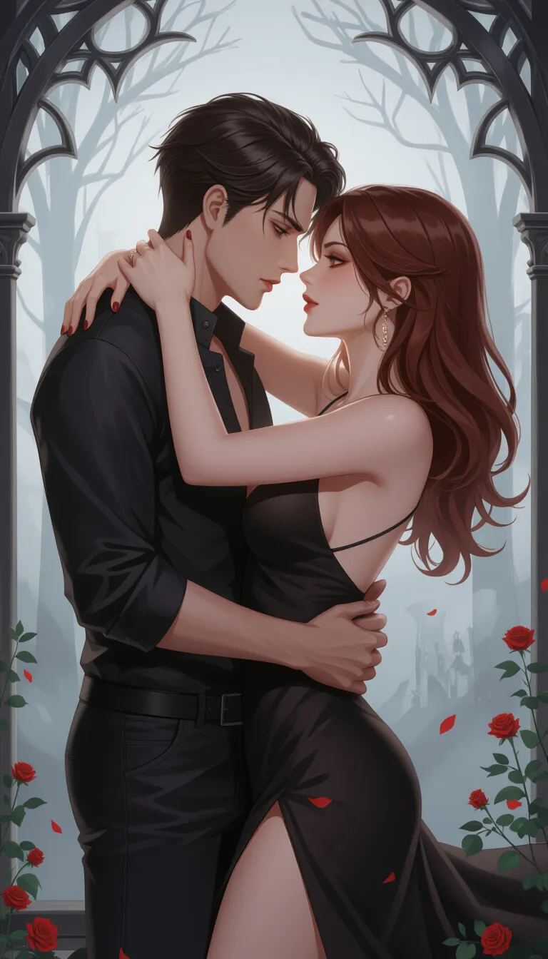 Damien’s chill envelops her before his hands even move. It’s not the cold of the rain, but the deep, still cold of ancient stone, of a place the sun never touches. He closes the final distance with a reverence that feels like a prayer. One hand comes up to cradle the back of her head, his fingers tangling in the damp strands of her auburn hair. The other rests, trembling, against her jaw. His thumb strokes the frantic pulse once, a silent question.