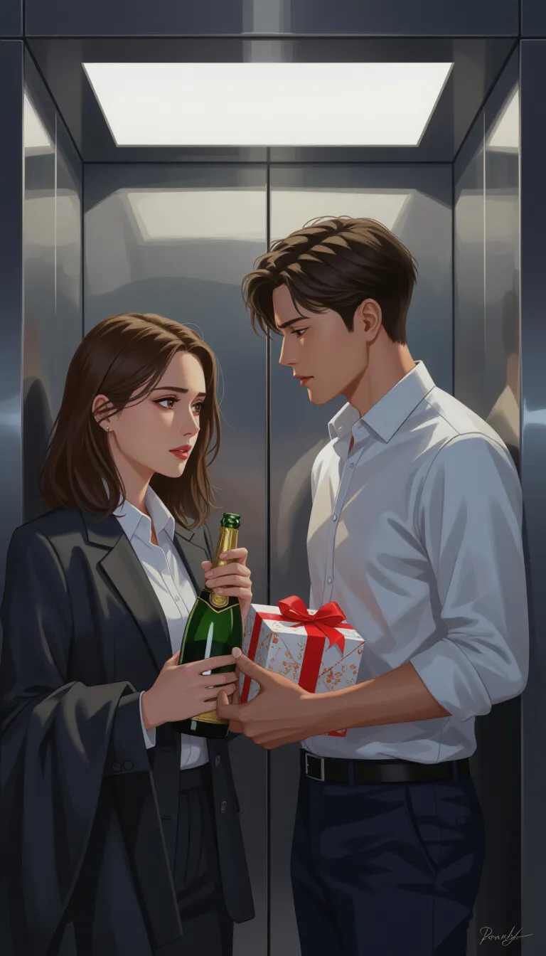 She took a small step forward, almost instinctively. He mirrored her, closing the remaining gap without breaking eye contact. The distance vanished. The world outside the elevator—the floors, the hallways, the distant city noise—faded completely. All that existed was them, suspended in this small, metallic cocoon.