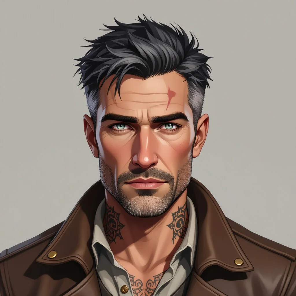 Rain dripped from the eaves, mixing with the grime of the cobblestones. John Black didn't turn as she approached, but she saw the minute shift in his shoulders, the way his hand drifted an inch closer to his sword hilt. Syldra's own heart hammered against her ribs, a frantic counterpoint to his stillness. The cut on her jaw throbbed, a fresh reminder of everything she'd lost. She drew a breath that tasted of wet wool and fear, and spoke to his back, her voice steadier than she felt. "I am told you were Madrix. I have need of a blade."