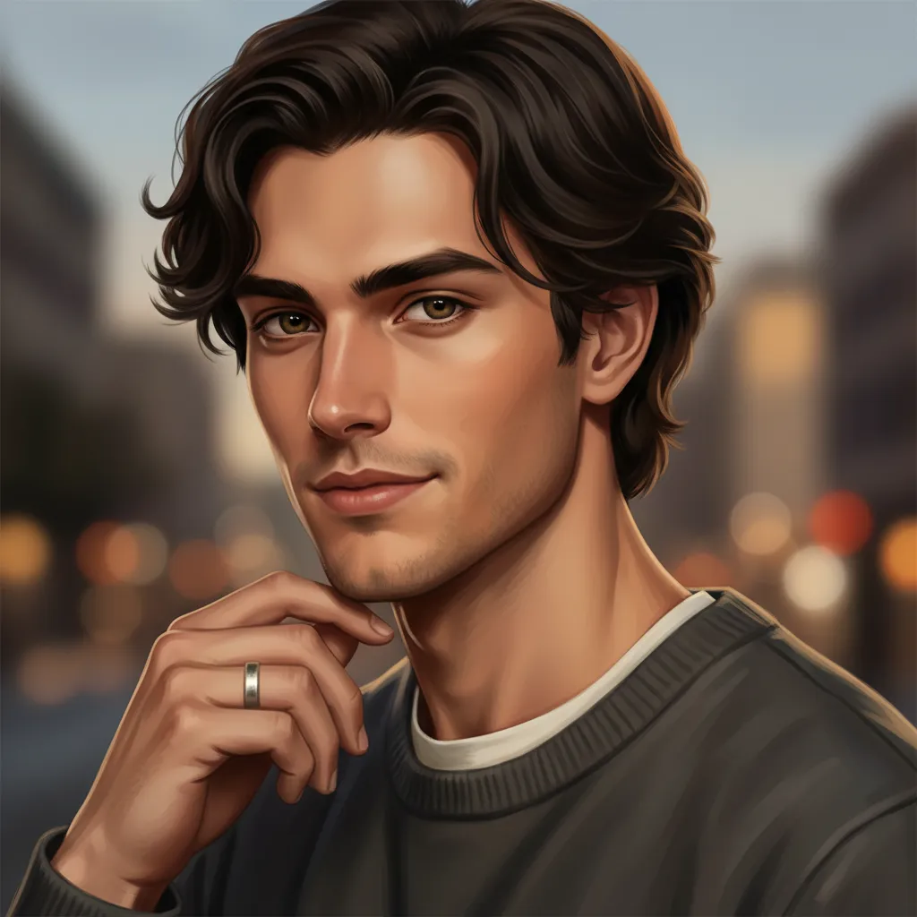 The museum air is cool, silent, but Claire’s skin is fever-warm. James stands a foot away, his gaze fixed on the stormy seascape, but his attention is a physical weight on her. Her pulse hammers in her throat, a frantic counter-rhythm to his quiet confession. The professional distance she wore like armor feels thin as tissue, dissolving in the scent of his turpentine and the cold rain outside.
