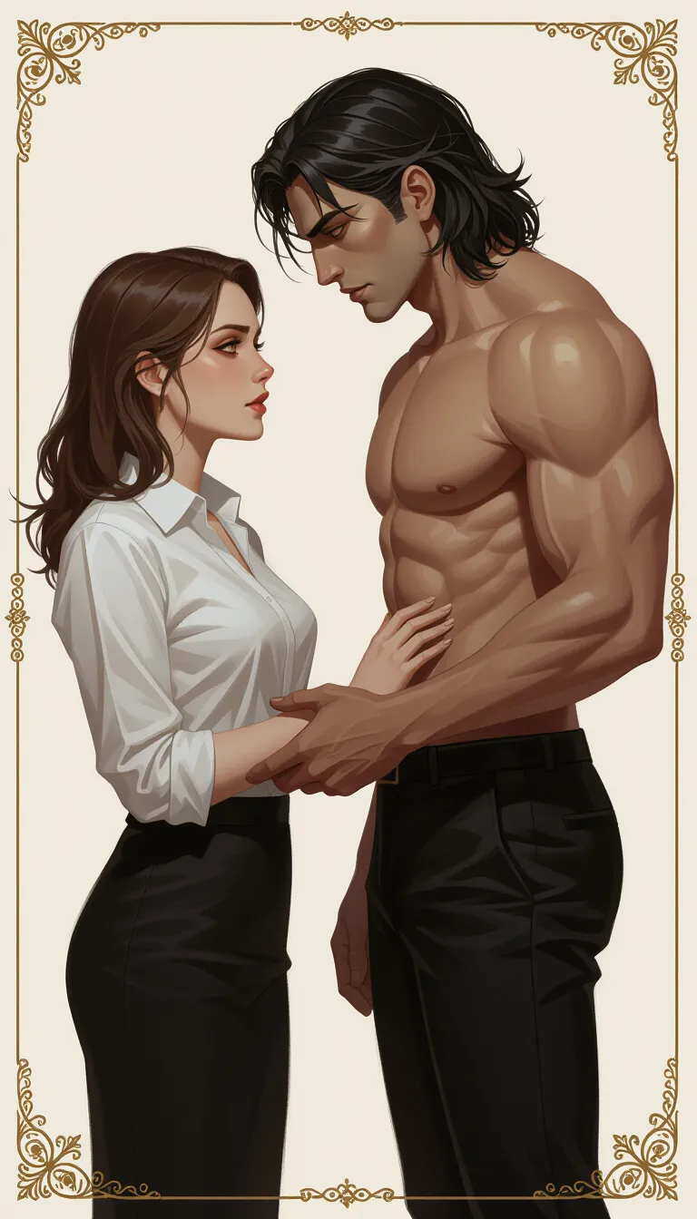 Her hazel eyes, wide and haunted, drag up to his storm-grey ones. There’s no clinical distance left in her, only raw need. Her hips lift a fraction, a silent, pleading arch off the desk, seeking the ruin she begged for. The movement slides him through her folds, and she gasps, her cold fingers digging into the hard planes of his shoulders.
