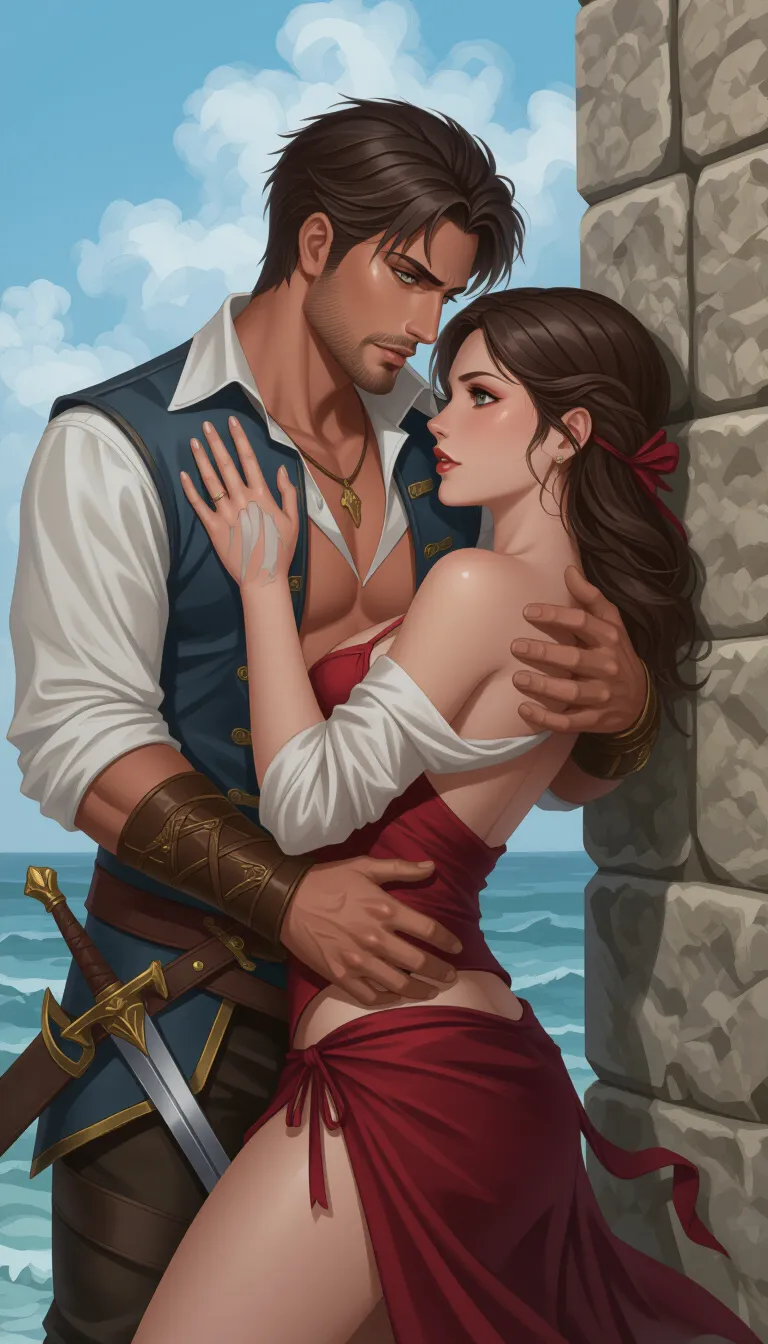 He pulls back just enough to look at her. His eyes are black in the dim alcove, his breath coming in short, hot gusts against her lips. The controlled prince is gone. In his place is a man poised on a knife-edge of need, every line of his body tense with the effort of holding still. Her scar burns, a brand against his skin. The silent, screaming question hangs between them: how deep does this go? How completely must they seal it? His gaze drops to her mouth, then back to her eyes. He is waiting. For her. For the next step the ache demands.