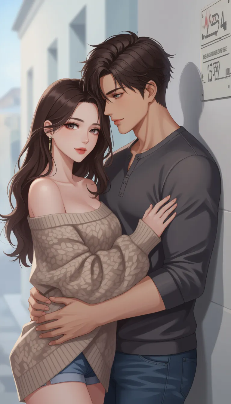 His other hand slides around to the small of her back, under the hem of her oversized sweater. His palm is hot on her bare skin. He walks her backward, the two steps to the edge of the mattress, his mouth finding hers again on the way. It’s less a kiss and more a taking, his tongue sliding against hers, a low sound vibrating in his chest. The backs of her knees hit the bed frame and she sinks down, pulling him with her.